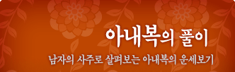 »çÁÖÇ®ÀÌ ¼Ó¿¡¼­ ¿©ÀÚÀÇ ³²ÀÚº¹ »çÁÖÇ®À̸¦ »ìÆìº¸´Â °ÍÀ¸·Î »çÁÖ¿¡¼­ ³²ÀÚÄ£±¸, ³²Æíº¹¿¡ ÀÇÇÑ ÀÚ½ÅÀÇ »çÁÖÆÈÀÚÀÇ º¯È­¸¦ ¶æÇÑ´Ù. ³²ÀÚº¹»çÁÖ Ç®ÀÌ´Â ³» »çÁÖÀÇ ¼ºÇâ, ¼º°Ýº¯È­, ÃÑ¿îÀÇ º¯È­¸¦ »ìÆì º¹·ÏÀÇ ±æÀ» »ìÇÇ´Â ¿î¼¼ÀÌ´Ù.